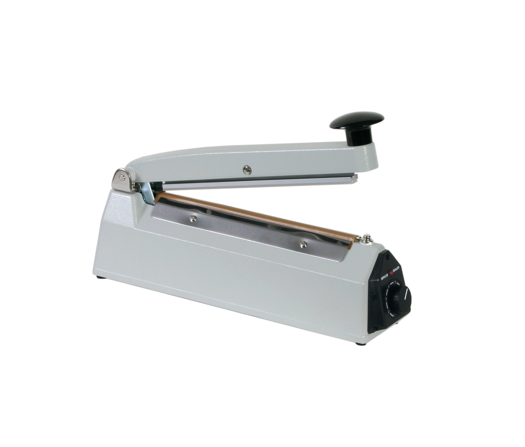 Impuls sealer met handbediening. Geschikt voor het sealen van Polyethyleen (HDPE en LDPE max. dikte 2x 0,15 mm.) en Polypropyleen.